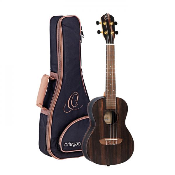 RUEB-CC, modèle Concert, table ébène, fond & éclisses ébène, manche acajou, sillet 36 mm, diapason 380 mm, binding tortoise, touche & chevalet noyer, mécaniques dorées à bain d'huile, cordes Ortega, avec housse deluxe.