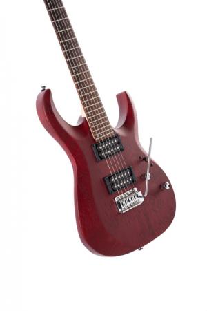 X100, corps meranti, manche érable, touche jatoba, trémolo 6 points, 2 doubles Powersound, black cherry pores ouverts