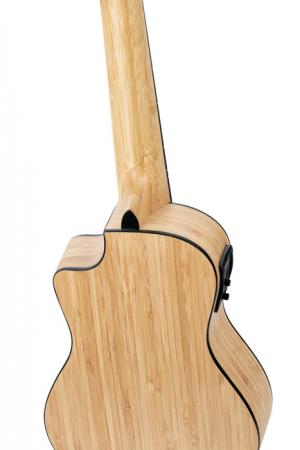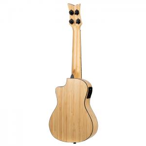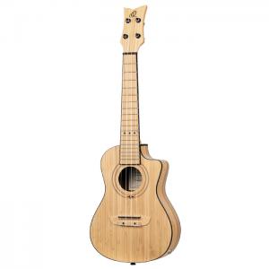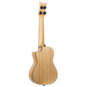 RUNAB-CC, modèle Concert, pan coupé, EQ Ortega MagusUke (accordeur intégré), table, fond & éclisses bambou massif, manche bambou, sillet 36 mm, diapason 382 mm, touche & chevalet bambou, rosace gravée au laser, binding ABS noir, mécaniques Graph Tech noires avec boutons noirs, avec housse luxe.