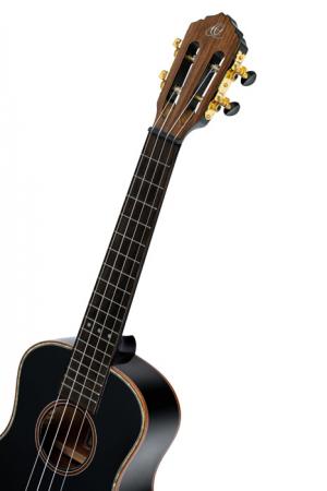 RUOX-TE, modèle Ténor, table épicéa, fond & éclisses acajou, manche acajou, sillet 37 mm, diapason 440 mm, touche & chevalet Tecwood, tête ajourée avec placage noyer, binding et rosace acajou, purfling nacre, mécaniques dorées à bain d'huile avec boutons noirs, housse luxe.