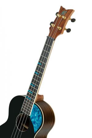 RUGH-BKT, modèle Ténor, table épicéa massif, fond & éclisses palissandre, manche acajou, sillet 35 mm, diapason 430 mm, binding ABS blanc, pickguard"Ghost", incrustation touche"blue pearl", touche & chevalet palissandre, mécaniques dorées ouvertes.