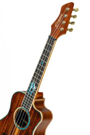 RUHZ30T-BW, modèle Ténor pan coupé, EQ Ortega MagusX/U (rechargeable), modèle Ténor pan coupé, EQ Ortega MagusX/U (rechargeable), table, fond & eclisse acacia massif, manche acajou, sillet 35 mm, touche et chevalet ébène, incrustations"baleines", tête renversée assortie, 4 mécaniques en ligne dorées à bain d'huile, avec housse deluxe.