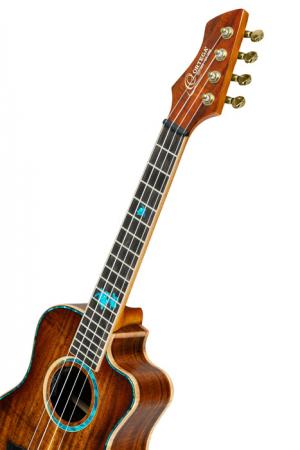RUHZ30T-ST, modèle Ténor pan coupé, EQ Ortega MagusX/U (rechargeable), modèle Ténor pan coupé, EQ Ortega MagusX/U (rechargeable), table, fond & eclisse acacia massif, manche acajou, sillet 35 mm, touche et chevalet ébène, incrustations"tortues", tête renversée assortie, 4 mécaniques en ligne dorées à bain d'huile, avec housse deluxe.