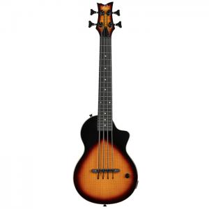 NEO-BS-TSB, modèle Ukebass, pan coupé, EQ MagusExpress, table érable flammé, corps okoumé, manche érable, housse, tobacco burst