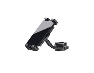 Support pour smartphone et tablette (tous modèles de taille 120 à 245 mm), étau pour tube de10 à 30mm de diamètre, pivote librement à 360°. Poids: 0.3 kg).