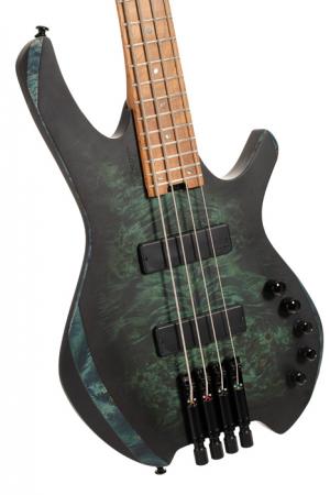 SPACE 4 BSDB, nouvelle forme"space" headless, 4 cordes, table peuplier figuré, corps érable, manche 7 pièces érable torréfié/noyer/purpleheart/érable, touche érable, 2 micros doubles MK-1 et EQ active Bartolini MK-1, frette zéro, logo nouvelle génération, accastillage noir, avec housse.