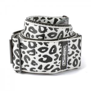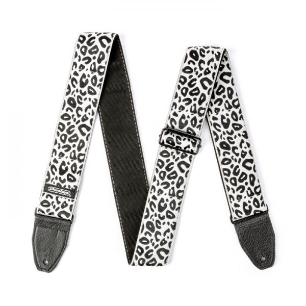 Courroie jacquard modèle ICE CAT, extrémités cuir, largeur 5 cm, noir et blanc
