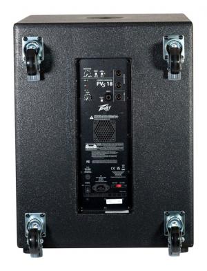 Caisson de basse amplifié Peavey PVs 18, 1000W (Woofer 18"), amplificateur DSP avec refroidissement par air forcé pour une fiabilité maximale, fonction Bass Enhance pour des basses plus percutantes, entrée combo jack/XLR, deux sorties XLR High-Pass, une sortie XLR Full-Range Thru, inverseur de polarité et fonction Ground Lift intégrés, système de montage fileté pour mât réglable inclus, grille en acier perforé robuste, poignées en acier pour faciliter le transport, roulettes verrouillables pour un déplacemnt facilité, compact et polyvalent, adapté aux environnements mobiles et fixes tels que clubs, églises, restaurants ou bars, poids 43 kg, dimensions : 67,9 x 50,8 x 66,2 cm.