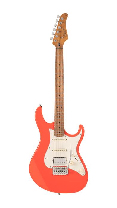 G200 SE, corps peuplier, manche et touche érable torréfié, 22 frettes, sillet 42 mm, 1 micro double et 2 simples Cort Powersound , 1 volume, 1 tonalité, switch 5 positions, trémolo, accastillage chromé.