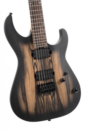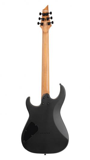 KX500, modèle 6 cordes, corps acajou avec table ébène"Pale Moon", manche vissé 5 pièces en érable torréfié & noyer, touche ébène de Macassar, 24 frettes inox, pontets individuels avec cordes traversantes, 2 micros doubles Seymour Duncan Sentient Nazgul, 1 volume, 1 tonalité, sélecteur 3 positions, mécaniques à blocage Cort, accastillage noir, repères phosphorescents, sillet TUSQ noir, cordes D'Addario EXL 110.