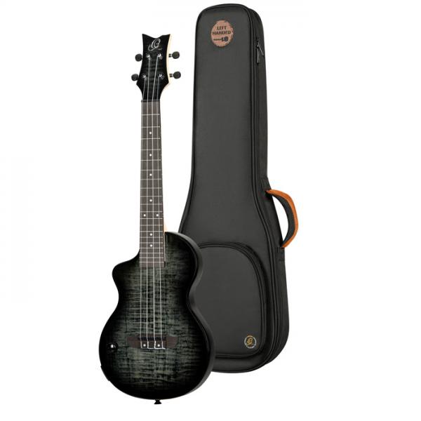 NEO-U-TGB, modèle Ténor gaucher, pan coupé, EQ Ortega MagusExpress rechargeable, table érable flammé, corps okoumé, manche érable, sillet 35 mm, diapason 430 mm, touche & chevalet amarante, mécaniques noires à bain d'huile, avec housse.