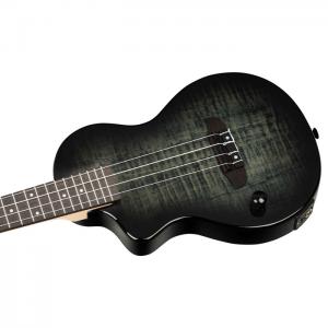 NEO-U-TGB, modèle Ténor gaucher, pan coupé, EQ MagusExpress, table érable flammé, corps okoumé, manche érable, housse, gris