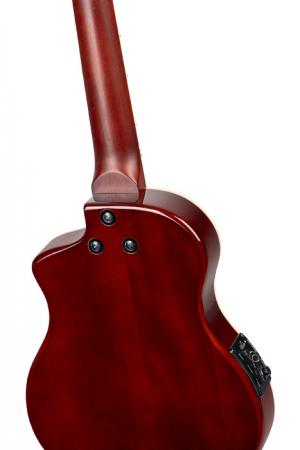 RTPS-U-NAT, modèle Tourplayer Ténor, pan coupé, EQ Ortega Magus X/U (accordeur intégré, rechargeable USB), table épicéa, binding érable flammé, fond et éclisses okoumé, manche acajou, sillet 35 mm, diapason 430 mm, touche & chevalet amarante, ouïes Tour Player, cordes Ortega UWNY-4-TE, avec housse Tour Player rembourrée.