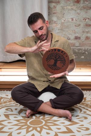 Surface sculptée motifs phases lunaires et arbre de vie.