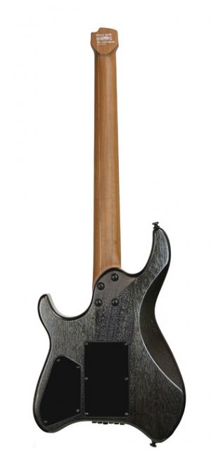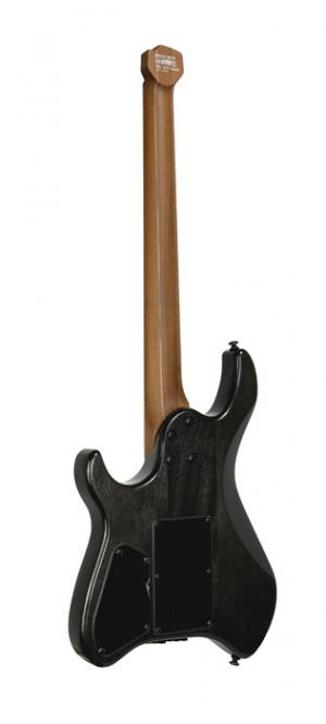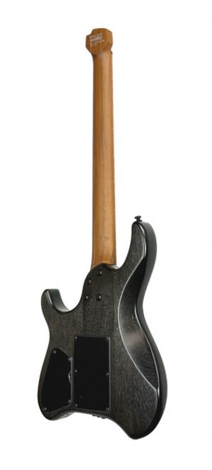 SPACE G6TR, nouvelle forme"space" headless, corps okoumé avec placage érable flammé, manche 5 pièces érable torréfié & noyer, touche érable torréfié, 24 frettes, vibrato, 1 micro double Cort Voiced Tone VTH77 et 2 micros simples VTS63, 1 volume, 1 tonalité, sélecteur 5 positions, logo nouvelle génération, repères phosphorescents, accastillage noir, sillet PPS, cordes D'addario EXL110, avec housse.