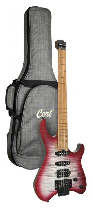 SPACE G6TR, headless, corps okoumé avec placage érable flammé, manche 5 pièces, micros Cort VTS 63 & VTH77, lava, housse