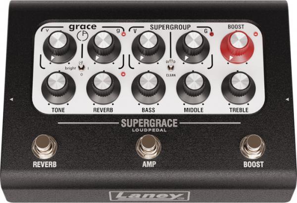 Ampli BCC-SUPERGRACE 60W, conçu en collaboration avec Billy Corgan et Carstens Amplification, 2 canaux/amplis avec Gain et Volume, canal"SUPERGROUP" basé sur l'ampli Laney SUPERGROUP LA100BL, avec switch clean/dimed, canal"Grace" basé sur l'ampli Carstens Grace, avec switch bright, égalisation passive 3 bandes, Tone, Reverb réglable (BCC SECRETPATH Spring), switch Reverb, switch Boost, switch de sélection de canal, sortie DI (XLR mâle symétrique) avec simulation de haut-parleur analogique commutable incant les deux IR préférés de Billy Corgan, sortie HP (8 ohms), boucle d'effets de haute qualité isolée par transformateur, entrée auxiliaire (mini-jack), sortie casque (mini-jack), Midi In/Thru, connectivité USB-C pour enregistrement direct et gestion des IRs via l'application LA-IR (Laney Advanced Impulse Response) dédiée, livré avec alimentation 24V, câble USB-C, adaptateur USB-A vers USB-C, dimensions: 67 x 199 x 143 mm, poids: 1,7 kg.
