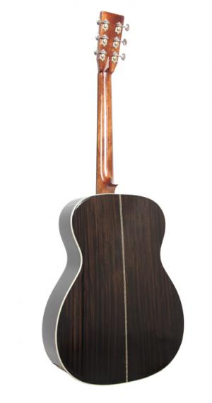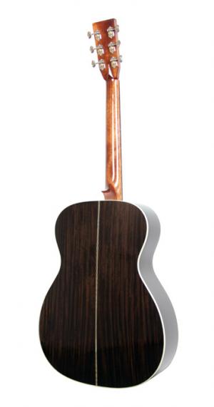 Modèle S000R-28-TBB, modèle custom, Forme 000, jonction 14ème frette, table épicéa massif, fond & éclisses palissandre indien massif, manche acajou, sillets en os, touche ébène, diapason 24.75" (628 mm), largeur au sillet 42.9 mm, mécaniques ouvertes Grover nickelées, EQ LR Baggs Anthem, avec étui SC-OM.