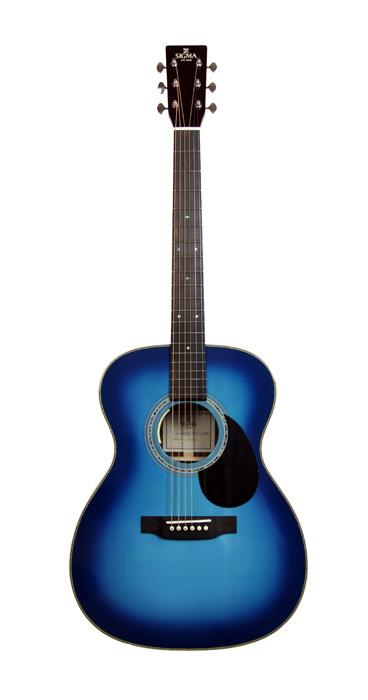 Modèle S000R-28-TBB, custom, Forme 000, table épicéa massif, f/e palissandre massif, touche ébène, LR Baggs, étui, blue burst