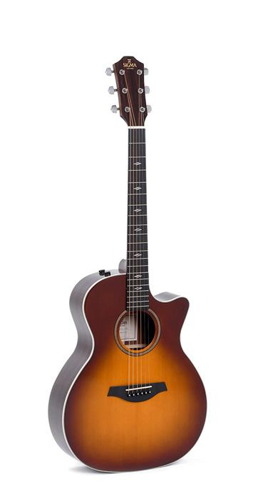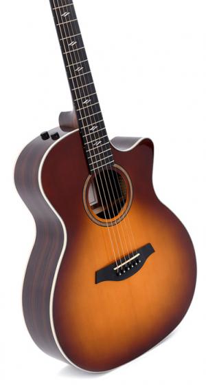 Modèle GRCE-2-SB, Grand OM pan coupé, table épicéa massif, f/e palissandre, touche micarta EQ Fishman, sunburst brillant