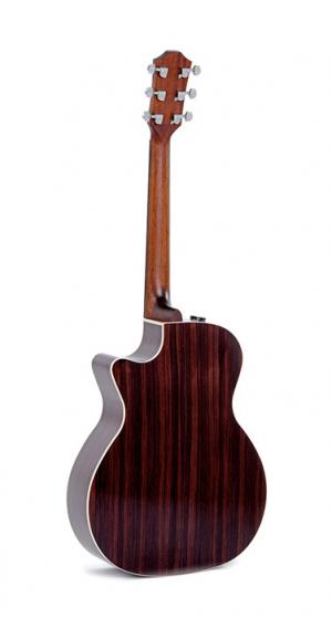 Modèle GRCE-2-SB, Grand OM pan coupé, table épicéa Sitka massif, fond & éclisses palissandre, manche acajou, sillets en os, touche et chevalet micarta, diapason 25.4" (645 mm), largeur au sillet 44.5 mm, mécaniques à bain d'huile chromées, EQ Fishman Presys II (accordeur intégré).