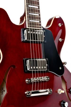 Modèle HBA-102H, Forme Semi-Hollow, table érable, fond et éclisses érable, manche acajou avec profil en C, trussrod double action, touche palissandre, sillet en os (42.9 mm), diapason 24.75" (628 mm), 2 micros Humbucker avec 2 sélecteurs série/parallèle, 2 volumes, 2 tonalités, sélecteur 3 positions, mécaniques vintage, cordes D'Addario EXL110 10-46, étui luxe.