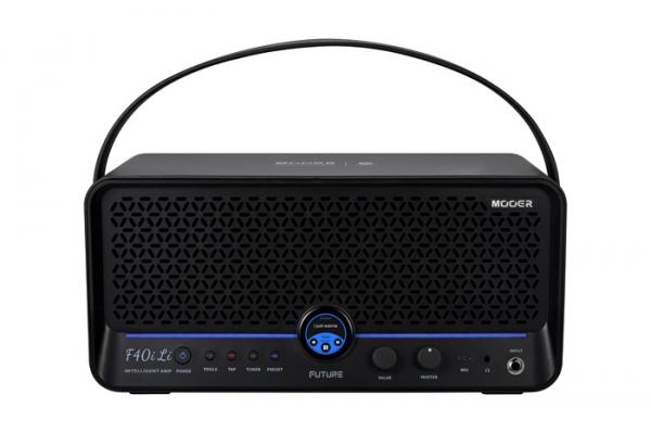 Ampli F40i Li, pour guitare et basse, 40W stéréo, 2x HP 4", technologie MOOER MNRS de modélisation non-linéaire, compatible Mooer AI, 55 amplis, 69 effets, écran tactile 1.28", looper 60 secondes synchronisable avec la boite à rythmes (60 grooves, 10 métronomes), accordeur intégré, batterie lithium rechargeable pour une utilisation nomade (environ 5 heures d'autonomie), deux canaux indépendants disposant chacun de sa chaîne d'effets, 1 entrée jack, 1 entrée combo jack/XLR avec contrôle du gain d'entrée etommutateur 48v, connectivité Bluetooth 5.0 pour lecture audio, sortie casque 3.5 mm, 2 sorties ligne jack, port USB-C pour enregistrement OTG haute qualité, édition complète des effets et presets via l'application gratuite iAMP (Android/iOS), compatible avec le pédalier sans fil GWF4, sangle de transport incluse.