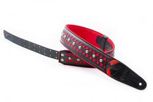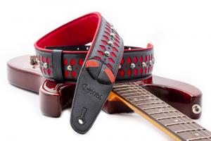 Courroie modèle ARMOUR, extérieur synthétique, largeur 6 cm, longueur 100 à 145 cm, porte-médiators intégré, rouge et noir
