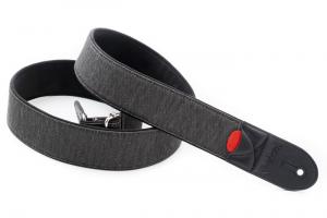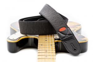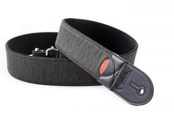 Courroie modèle DENIM-50, extérieur tissu, extrémités synthétique, largeur 5 cm, longueur 85 à 150 cm, porte-médiator intégré.
