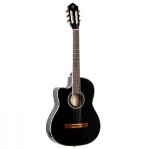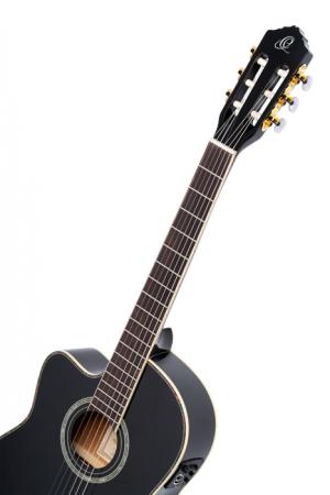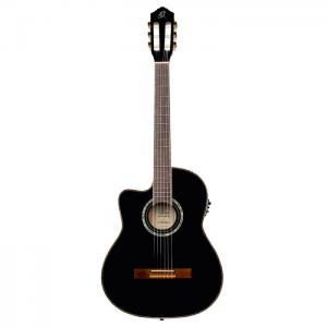 RCE145L, modèle gaucher Slim Neck à caisse fine, pan coupé, EQ Ortega MagusPro (accordeur intégré), table épicéa canadien massif, fond & éclisses acajou, manche acajou (sillet 48 mm), touche (plate) & chevalet sonokeling, chevalet 12 trous, truss rod double action, cordes D'Addario, avec housse rembourrée.