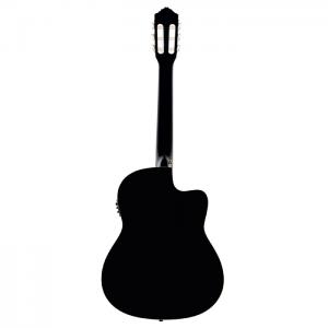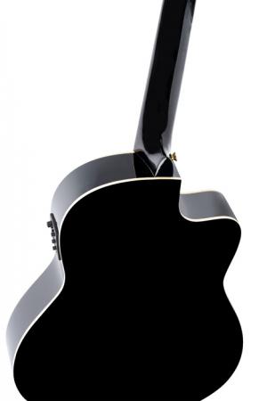 RCE145L, modèle gaucher à caisse fine, pan coupé, EQ MagusPro, table épicéa massif, manche acajou (sillet 48 mm), noir brillant