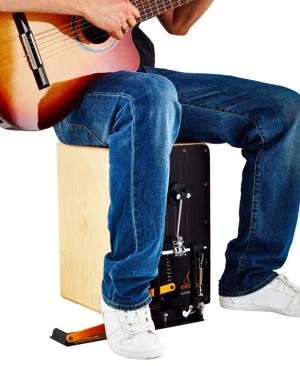 Ensemble constitué d'un cajon Ortega (corps en bouleau, face avant en amara, 46 x 30 x 30 cm, fabriqué en Europe, avec housse de transport) et d'une pédale cajon Ortega (métal robuste, batte en mousse, tension du ressort ajustable, livrée avec housse et clé de réglage).